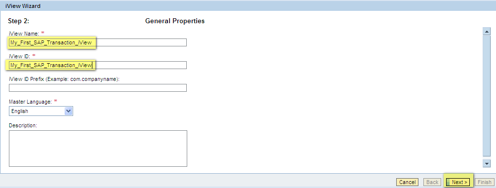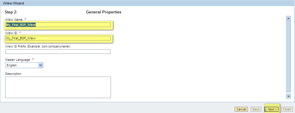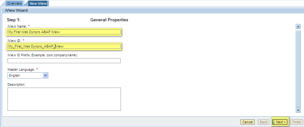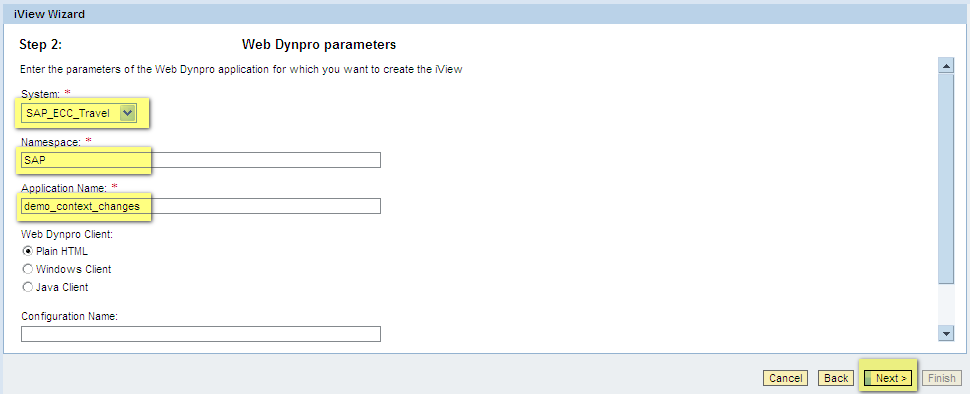 - Application Name (Mandatory): Web Dynpro ABAP Application Name