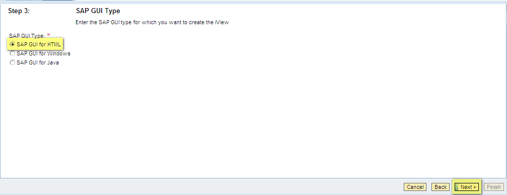 8. Select SAP GUI for HTML as the GUI type and then press the ‘Next’ button.
