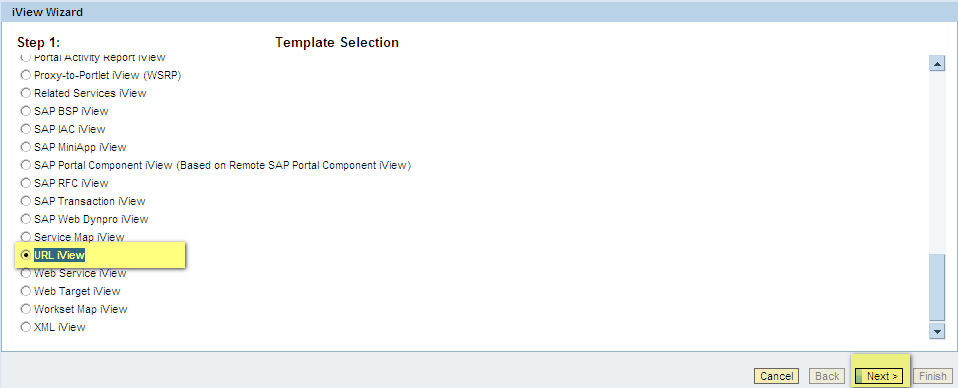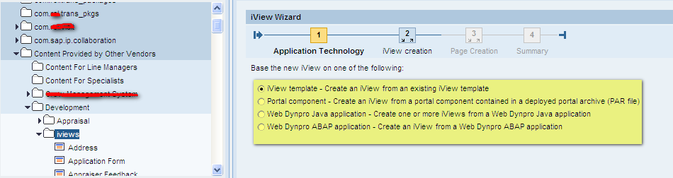 5. In the iView Wizard, select ‘iView template – Create an iView from an existing iView template’ radio button and then click on the ‘Next’ button.