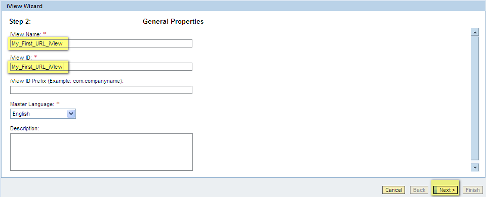 7. Give a name and a unique Id to your iView and then click on the ‘Next’ button.