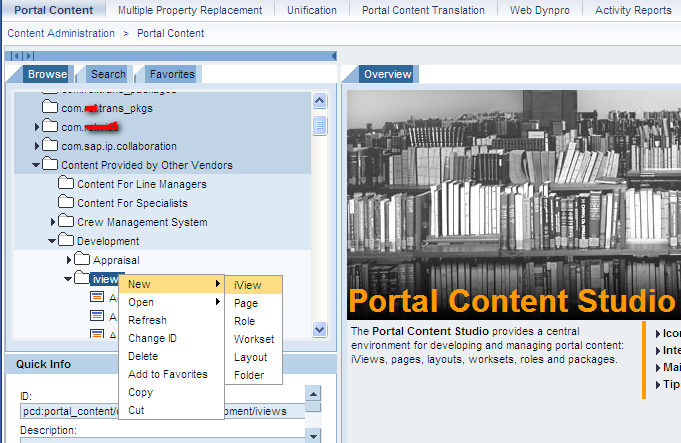 SAP Portal iViews (Information View) are the most basic type of portal content which are used to integrate applications into an SAP Portal. If you want to show any information /service applications on the portal then you have to create an iView, which is then assigned to a page. Pages are then assigned to a workset and workset’s are assigned to roles. Finally, roles are assigned to users.