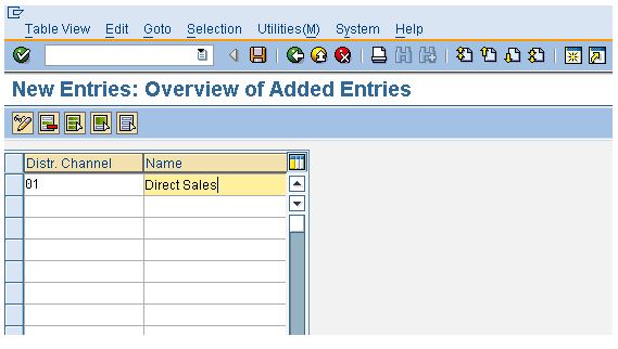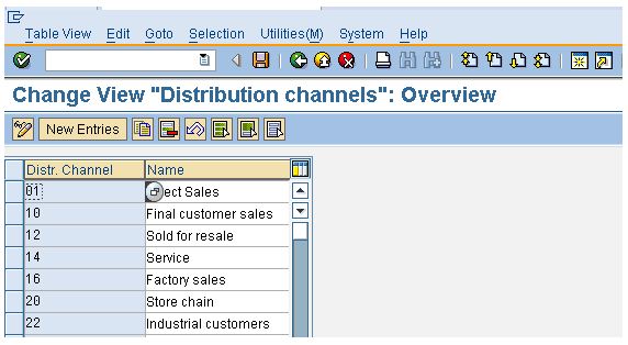 A distribution channel represents the medium by which products and services are distributed by a company to its end user. A company may use multiple distribution channels to achieve this objective. Different products may be distributed by means of different distribution channels. Common distribution channels include retail, wholesale, B2B, etc. A distribution channel is first created and then it is assigned to a sales organization.