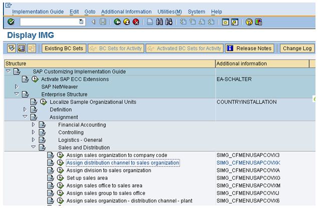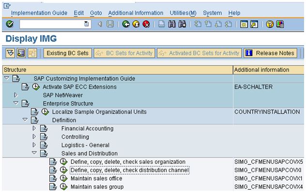 The sales and distribution organizational structure is set in two steps. First of all the organizational elements are created and then they are linked to each other by specific assignments. For e.g. a sales organization is created first, and then it is assigned to a company code.