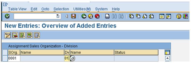 A division is used to represent a specific product or service line in accompany. Each material in the material master is linked to a particular division. The division is first created and then it is assigned to the sales organization.