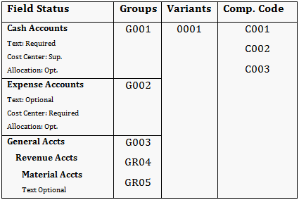 In SAP, the variant principle is used for field status, posting periods, and fiscal years.
