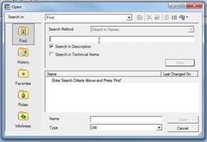 Finally, there is the Find option. Because there can be many reports and folders within a BW System, it can be confusing trying to find reports that you’d like to use. With this in mind, SAP have built in a find function for your queries, views and workbooks.
