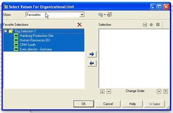 There is also a Search option, which provides options for searching through the master data of your system and saves you from scrolling through a large list of values. You can search both by Text and by Key, as well as different Attributes which are associated with the field we are filtering. There are three search boxes; the second and third allow you to select from the History, Favourites or Value Range sections, giving you as many ways as possible to find Master Data to add to the Filter list. Access this by clicking the ‘two squares’ icon to the right of the second and third search fields.