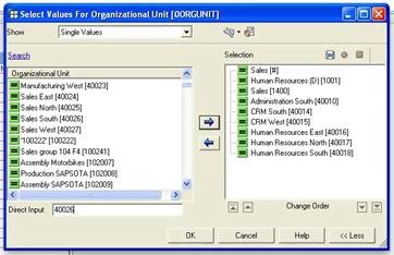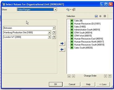 Single Values allows us to go back into the underlying database and bring back all the records we have in our InfoProvider. Individual values can be selected to the selection in this way, again either by clicking the Move to Selection button (the blue, right-facing arrow) or just double clicking the value itself. A highlighted range of values can also be added at once.