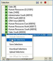 Everything that has been selected in this screenshot is a ‘positive selection’, which means that they are values we wish to include. If you wish to exclude a value or range from inclusion, then right click the value and select Exclude Selections from the context menu. The icon will change from a green to a red background, denoting its exclusion from the Selection range.