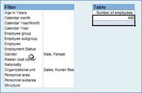The Filter function brings up another table which contains free characteristics. Any field that does not belong to the body of the report resides here. In BW, if a field contains a numeric value then it is a key figure, whereas anything that can be ‘drilled down’ is a characteristic. The fields in the Filter table are free characteristics because they have not been added to the report, although they can be dragged and dropped into the report at any time.