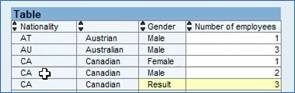 This Report, on the other hand, shows the ‘Number of employees’ first, and then the data is drilled down by ‘Nationality’, and then across by ‘Gender’.