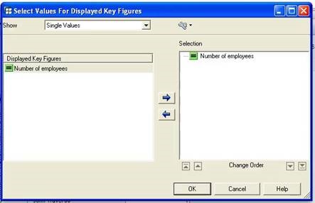 Instead of individual values, this is representing the key figure fields we have available. In this example, there is only one figure field available (‘Number of employees’). Removing this figure field from the Selection window removes the column from the report; adding it back will restore the column.